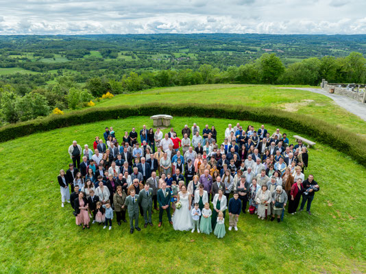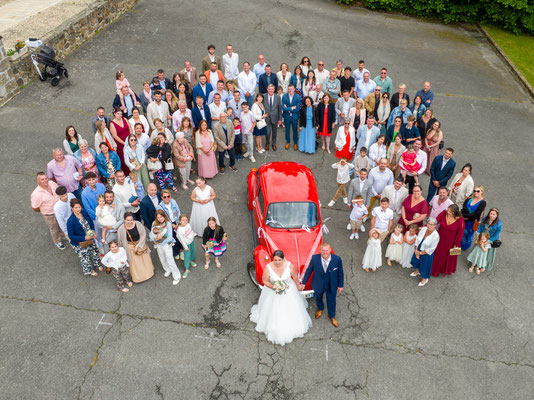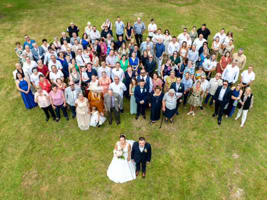 Vous trouverez ci-dessous quelques exemples de photos de groupes au drone dans le cade d'un mariage